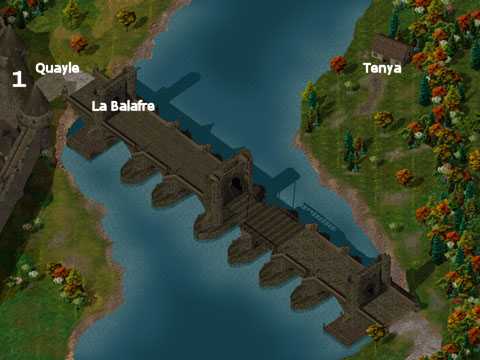 1. : Porte Est de Baldur's Gate, c'est la seul façon d'entrée dans la ville. Quayle souhaite vous rejoindre. La Balafre : C'est le commandant en second du Poing Enflammé, il a une mission à vous confié (seulement à partir du chapitre 5, avant vous ne pouvez pas passer). Le chef des Sept Soleils, Jhasso, a une attitude étrange, La Balafre aimerait que vous enquêtiez, dans la plus grande discrétion. Tenya : C'est un clerc neutre mauvais de niveau 5. Si vous lui parlez des pêcheurs elle vous attaque (Xp : 650, PV : 33). Si vous ne la tuez pas d'un coup, elle vous révèle qu'en fait les pêcheurs (ar1400) ont tué sa mère et volé son bol de contrôle des élémentaux d'eau et vous demande de le récupérer. |