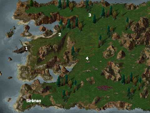 Note : Attention il y a beaucoup d'ogre, ogrillon et demi-ogre dans le secteur. Sirénes : 3 sirénes rôdent dans les parages (Xp : 3 x 2000). Attention elles sont très dangereuses car elles lancent des charmes néfastes. |