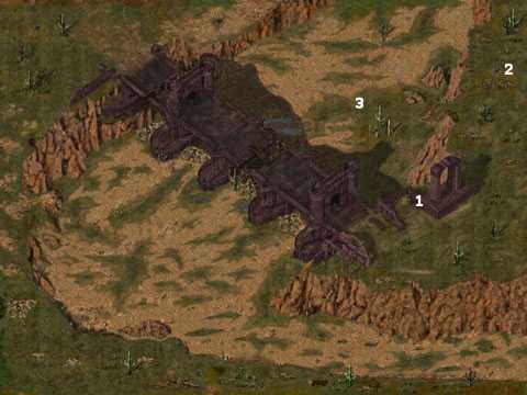 1. : Entrée du dongeon. 2. Meilum est un guerrier neutre mauvais de niveau 6 (Xp : 1200, PV : 55). Il possède une épée longue + 1 et un gantelets de spécialisation. 3. Carsa est une magicienne qui est tombée sur une Jarre contenant Kahrk. Si vous insistez pour lui prendre la jarre Kahrk apparait, la tue puis vous attaque. Kahrk est un ogre-mage de niveau 12 (Xp : 3500, PV : 103) |