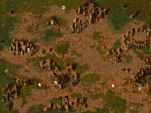 1. : Sortie de la mine de Nashkel. 2. : 4 assassins vous attendent : Lamalina : Clerc de niveau 5 (Xp : 1200, PV : 33). Maneïra : guerrier/voleuse de niveau 4/4 (Xp : 600, PV : 31). Telka : guerrier/voleuse de niveau 4/4 (Xp : 600, PV : 21). Zila : Clerc de niveau 6 (Xp : 900, PV : 31). 3. : Grotte a : Un goule (Xp : 175) défend 81 po. 4. : Hentold : Il a volé une dague + 2 dans une tombe de la grotte b et est maintenant poursuivit par la créature de la tombe. Il vous donne la dague pour se débarraser du revenant qui le poursuit. 5. : Grotte b : Un revenant (Xp : 3000) défend 142 po et quelques potions. 6. : Narcillicus Harwilliger Néen : C'est un mage neutre mauvais de niveau 7 (Xp : 1400) qui fait des expériences. Il y a trois possibilités suivant vos réponses : - réponse 1 : le mage s'en va. - réponse 2, 1 : le mage invoque 4 limons verts (Xp : 4 x 65) et s'en va. - réponse 2, 2 : le mage invoque 2 gelées moutardes (Xp : 2 x 2000) et attaque. 7. : Grotte c : Deux Blêmes (Xp : 2 x 650) défend une cotte de maille + 1, des flèches + 2, une baguette de convocation de monstres et autres. |